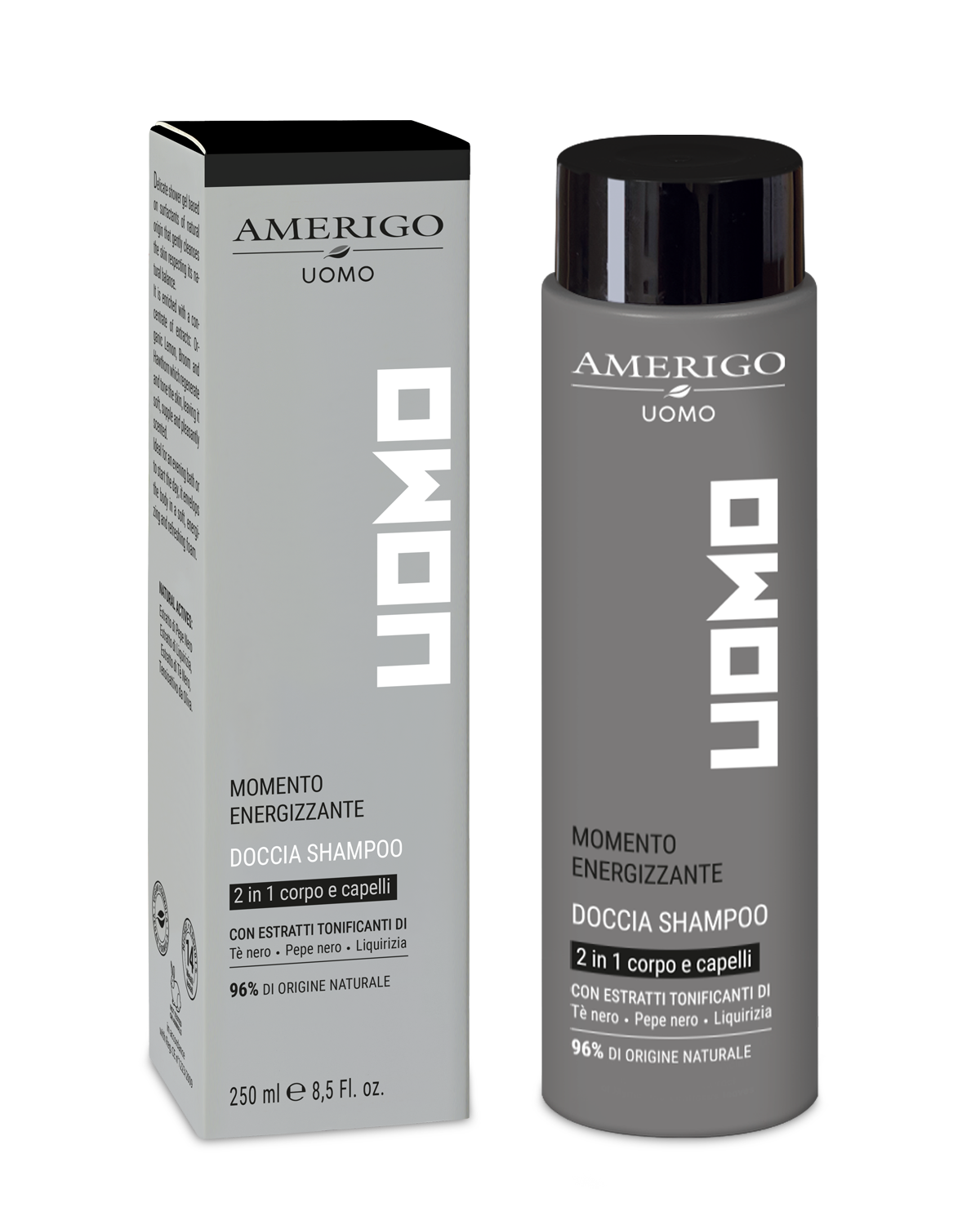Esclusivo docciashampoo che in unico gesto deterge corpo e capelli rispettandone il naturale equilibrio. Formulato con tensioattivi di origine vegetale ed estratti tonificanti di Pepe nero, Liquirizia e Tè nero, svolge un’efficace azione detergente, idratante e energizzante. E’ ideale per uso quotidiano e dopo lo sport.
