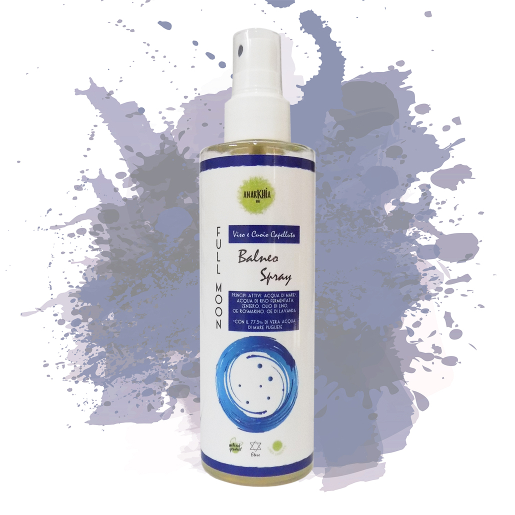 Il balneo spray Full Moon è un bifasico che offre i benefici di un “bagno” di acqua di mare, raccolta e purificata con metodo brevettato negli stabilimenti Steralmar, alla tua pelle. L’acqua di mare è infatti carica di sali minerali e di oligoelementi dagli effetti rivitalizzanti e purificanti. La salinità è addolcita dalla presenza di acqua di riso fermentata e dall’olio di semi di lino, ricco di acido linoleico. L’estratto di zenzero ha una decisa azione tonificante mentre gli oli essenziali di Limone e Rosmarino hanno proprietà antiossidanti, astringenti e antisettiche. L’OE di Lavanda rigenera e calma le irritazioni.